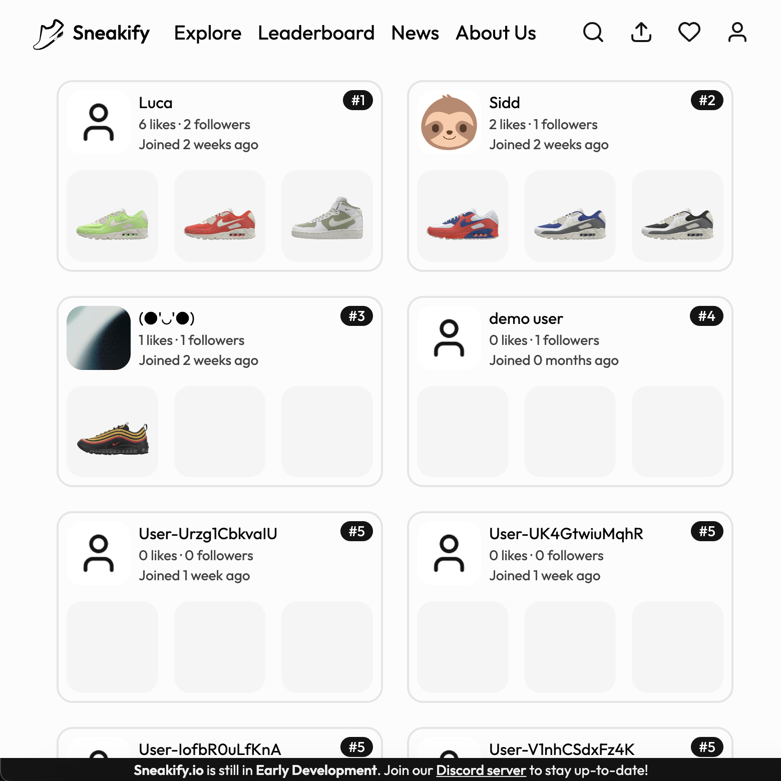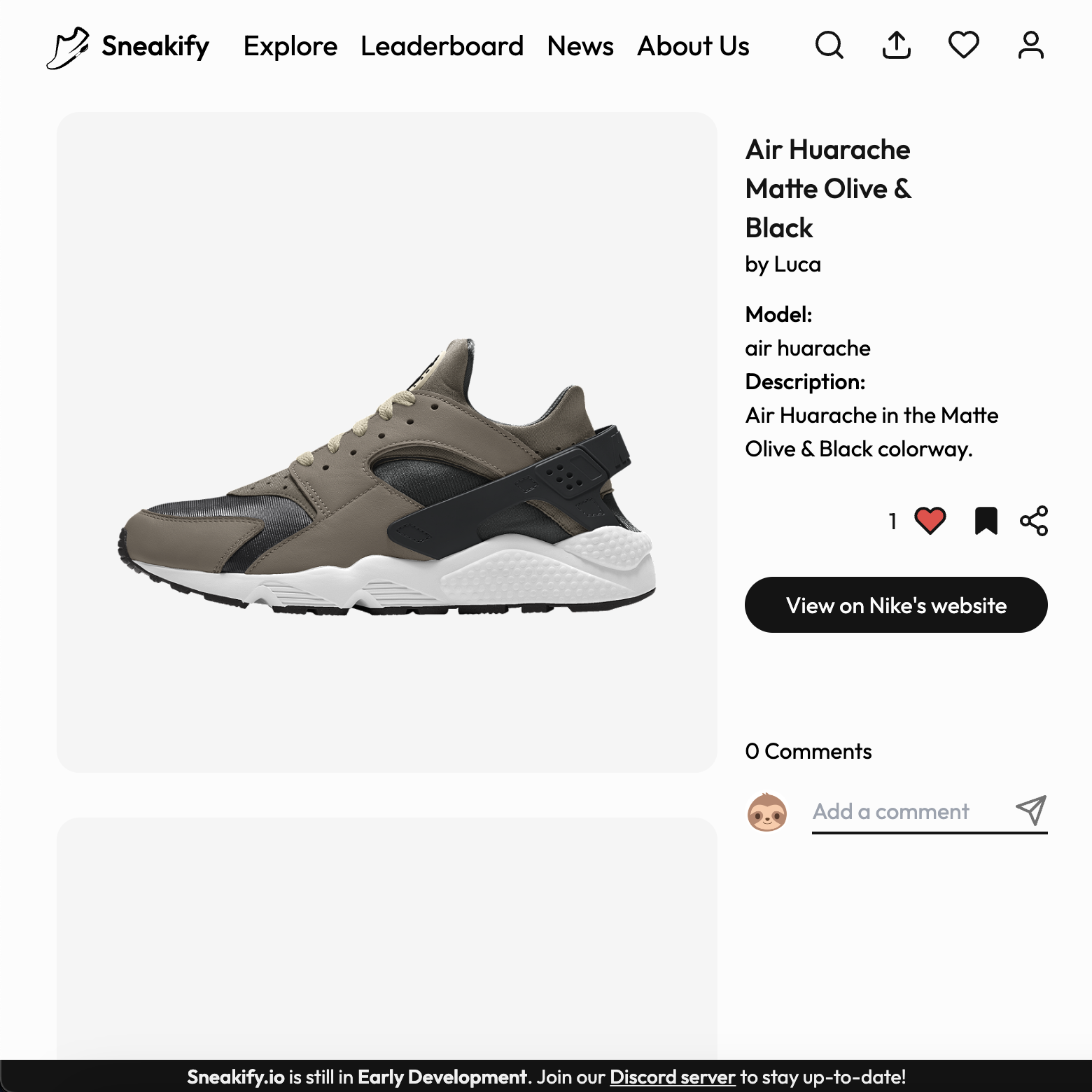 This inspired us to create Sneakify, a dedicated social platform for sneaker designers and enthusiasts. Here, you can easily find custom sneakers to order through the Nike website, and designers can grow their communities and expand their follower base.